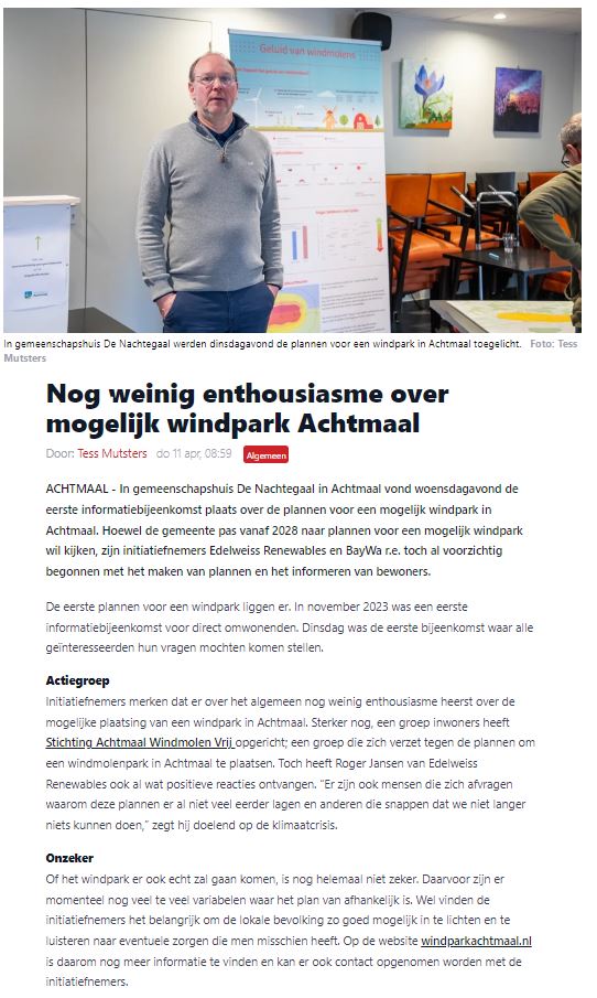 In de Zunderste bode wordt terecht genoemd dat Achtmaal niet zit te wachten op een windpark.